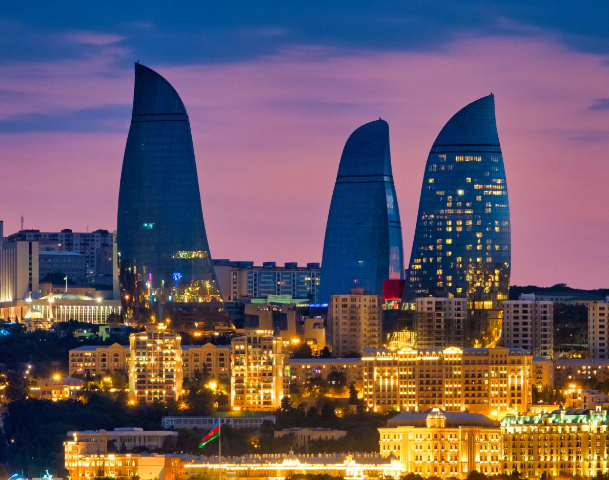 Baku, the capital of Azerbaijan, is a stunning blend of futuristic skyscrapers and centuries old architecture. Located on the shores of the Caspian Sea, the city is known for its Flame Towers, charming Old City, modern boulevards, and vibrant cultural scene. With world class food, welcoming people, and impressive landmarks, Baku offers an unforgettable travel experience for all types of visitors.